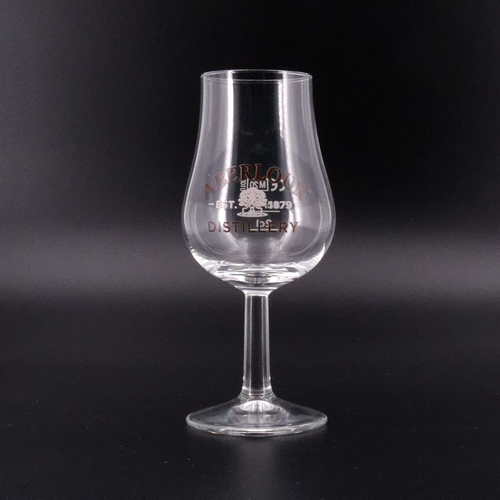 Abgerundet wird dieses Nosing-Glas durch den bekannten, Bordeaux-roten Schriftzug der Aberlour Destillerie auf dem Glaskörper.