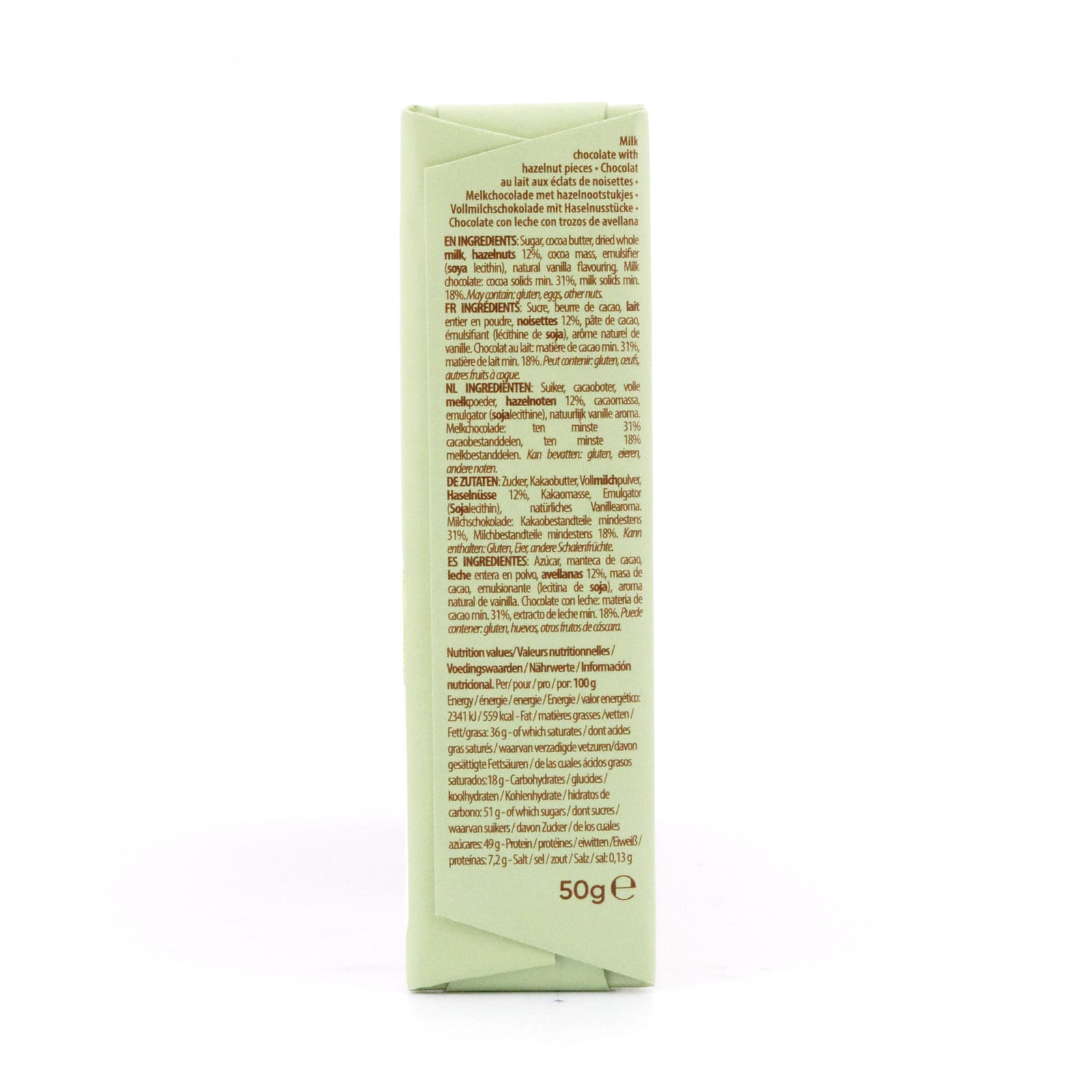 • Zartschmelzende Milchschokolade mit knackigen Haselnussstücken.