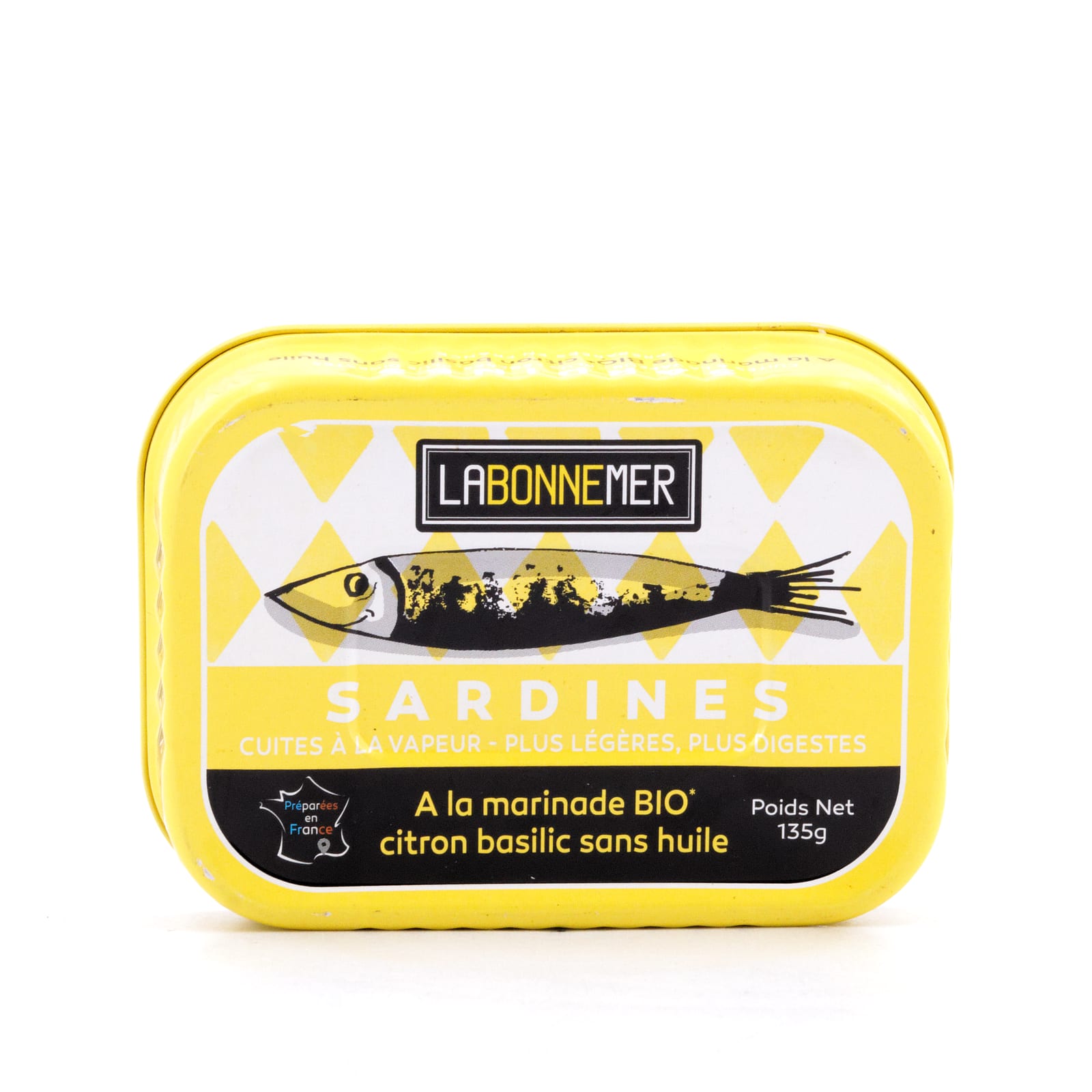 Zutaten: Wilde SARDINEN (Sardina pilchardus) 70%, Marinadensauce 28% (Wasser, Alkoholessig*, Salz, Zucker*, Zitronengeschmack*, Zitronensaft* 0,1%, Verdickungsmittel: Xanthangummi, Basilikum* 0,05 %), Zitronenscheibe* 2%.*