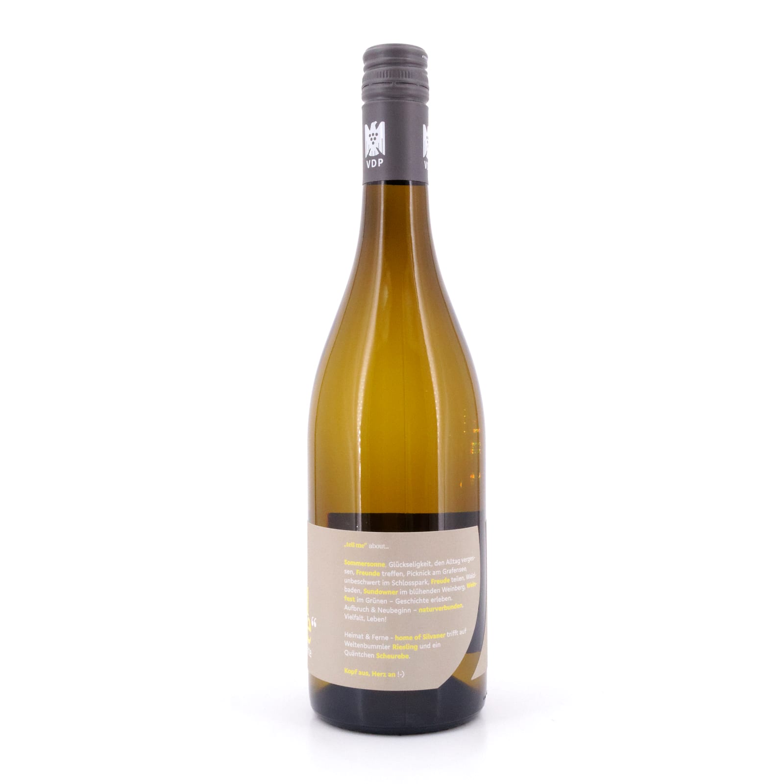 Im Glas präsentiert sich der Wein in einem strahlenden Hellgelb mit grünlichen Reflexen. Es entfalten sich Aromen von frischem Steinobst, Zitrusfrüchten und weißen Blüten. Am Gaumen zeigt er sich lebendig und erfrischend, mit einer gut integrierten Säure und einer feinen Mineralität. Die Cuvée überzeugt durch ihre Saftigkeit und eine dezente Kräuterwürze, die dem Wein zusätzliche Tiefe verleiht.