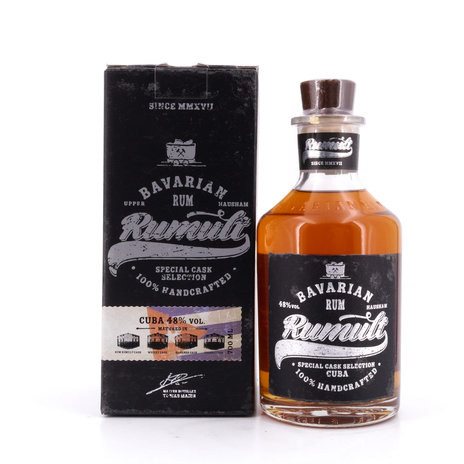 Ein Teil des Rums stammt aus handverlesenen Fässer der „Rumult Signature Cask Selection“, der zweite Teil ist kubanischer Rum aus Melasse gebrannt, den Master Distiller Tobias Maier eigens ausgewählt, importiert und in ehemaligen Whisky-, Sherry- und Silvaner-Fässern am Schliersee hat reifen lassen.